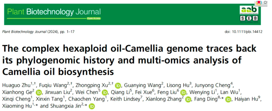 本期分享的文献是2024年6月发表在《PLANT BIOTECHNOLOGY JOURNAL》期刊上的研究性论文,题目为“The complex hexaploid oil-Camellia genome traces back its phylogenomic history and multi-omics analysis of Camellia oil biosynthesis”。